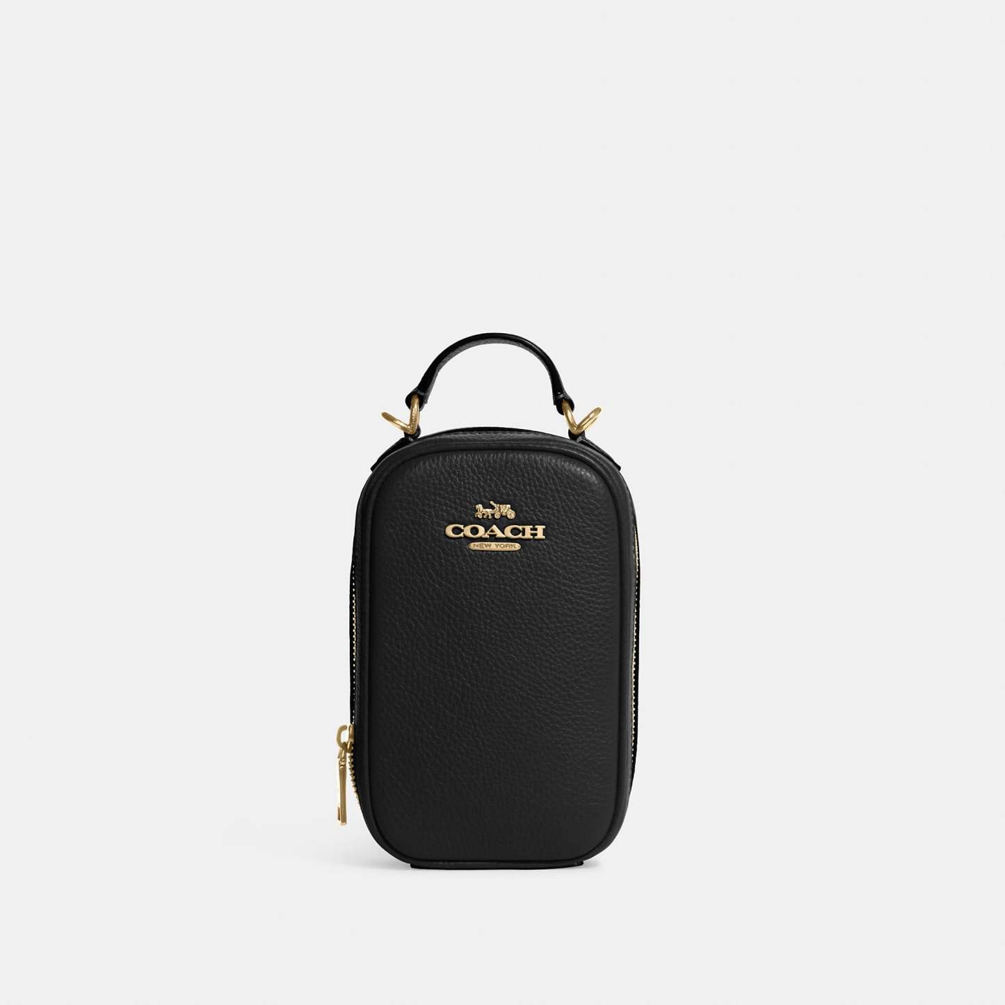Refined pebble leather Four credit card slots Zip closure fabric lining Handle with 1 3/4 drop Detachable strap with 23 drop for shoulder or crossbody wear 4 1/2 (L) x 7 (H) x 2 1/4 (W) Style No. CB854