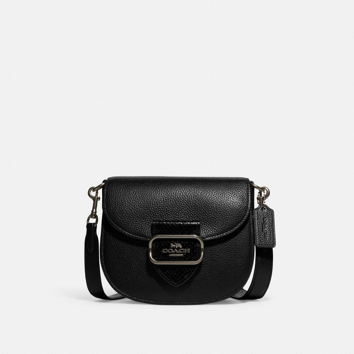Refined pebble leather and snake-embossed leather Inside multifunction pockets Snap closure fabric lining Outside open pocket Detachable strap with 22 drop for shoulder or crossbody wear 7 3/4 (L) x 6 3/4 (H) x 2 3/4 (W) Style No. CG470 | Outlet Morgan Saddle Bag - Black