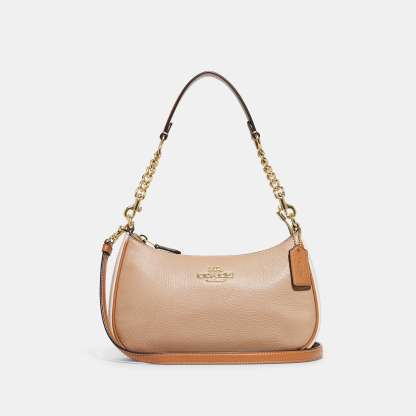 Refined pebble leather Two credit card slots Inside multifunction pocket Zip-top closure fabric lining Detachable handle with 8 1/4 drop Detachable strap with 22 3/4 drop for shoulder or crossbody wear 9 1/2 (L) x 6 (H) x 3 (W) Style No. CA173 | Outlet Teri Shoulder Bag In Colorblock - Beige