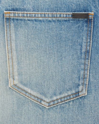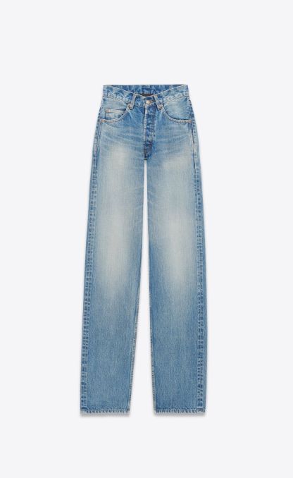 V-WAIST LONG BAGGY JEANS IN VINTAGE BLUE DENIM