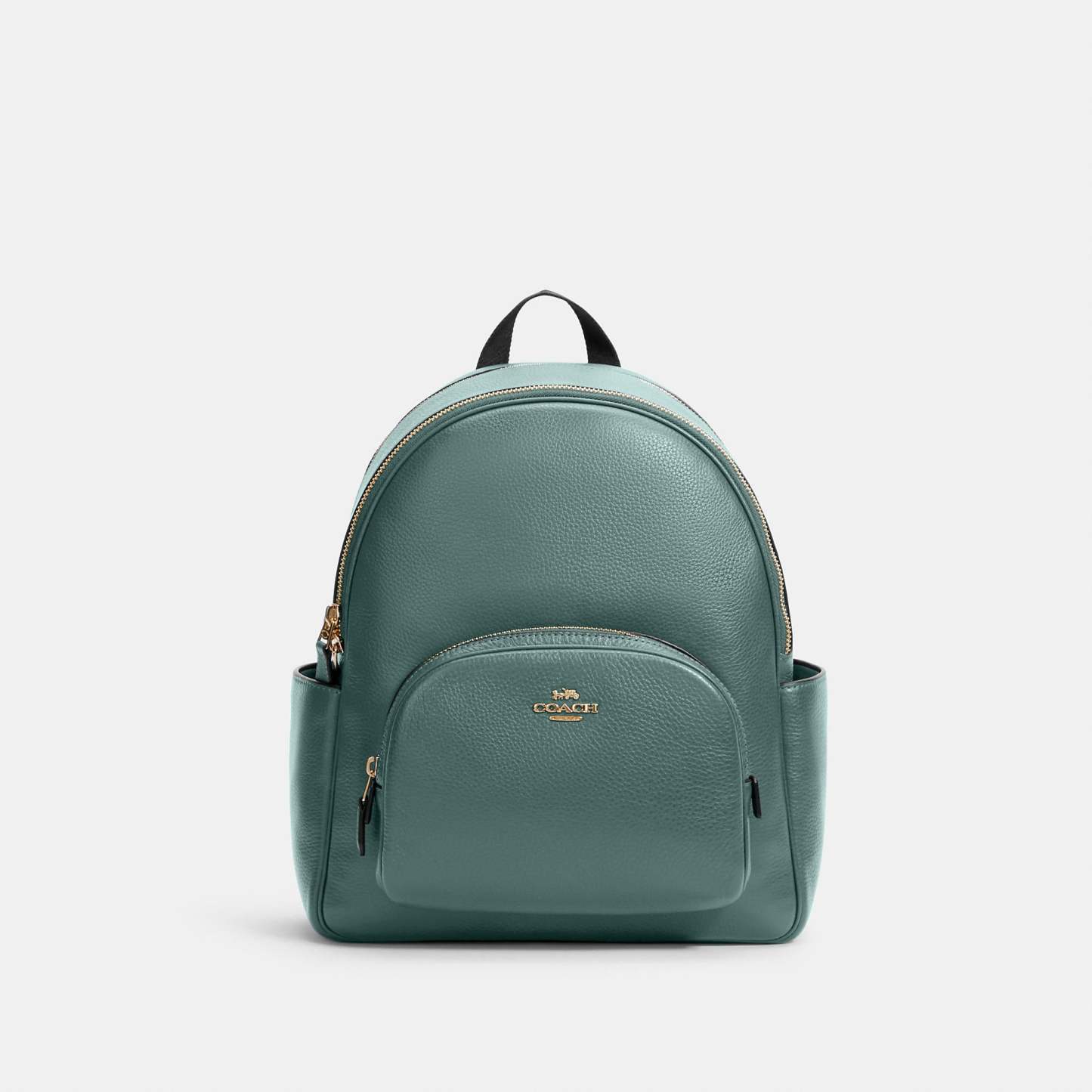 Refined pebble leather Inside zip and multifunction pockets Double zip closure fabric lining Handle with 2 1/4 drop Outside zip pocket Adjustable shoulder straps 10 3/4 (L) x 12 1/2 (H) x 4 3/4 (W) Style No. 5666